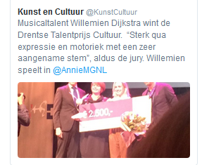 Willemien Dijkstra wint Drentse Talentprijs Cultuur!