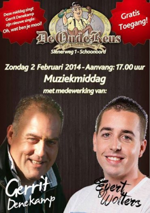 Zanger Gerrit Denekamp presenteert op 2 februari zijn debuutsingle in café de Oude Reus te Schoonoord. Gerrit wordt al enige tijd vocaal gecoached bij Vocal Music (door Bert Kamping).